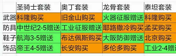 根据可以免费获得的神装,如果要购买神装的话,推荐优先顺序为:一圣骑士剑,二泰坦斧,三龙骨盾,四龙骨戒,其他随意,优先成套即可。具体获取途径如下: