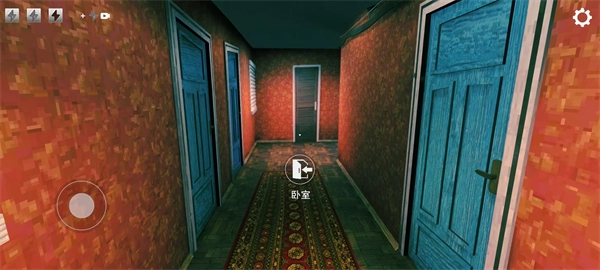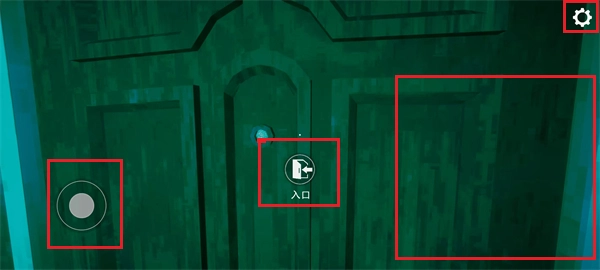 游戏开始时,左侧是移动摇杆,右侧通过滑动屏幕来调整视角,右上角设有设置按钮。之后点击中间的“入口”按钮,即可开启大门。