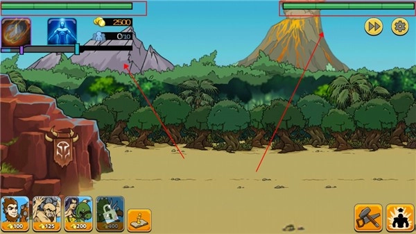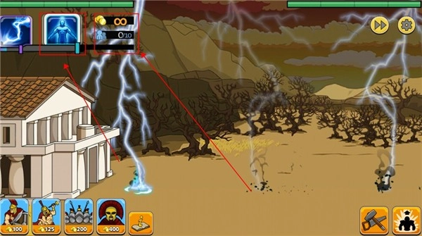 敌军会不断召唤士兵向你发动进攻,你得点击左下角来挑选合适的兵种进行迎战。金币的数量决定了你所能召唤的士兵的等级和数量。