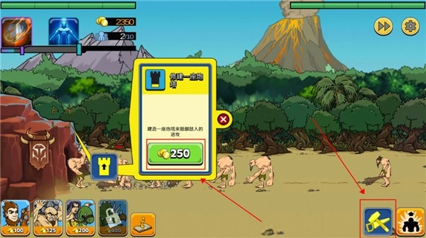 除了召唤士兵守卫基地,还能借助右下角的建造功能,为基地增设防御塔之类的设施,以增强防御能力。