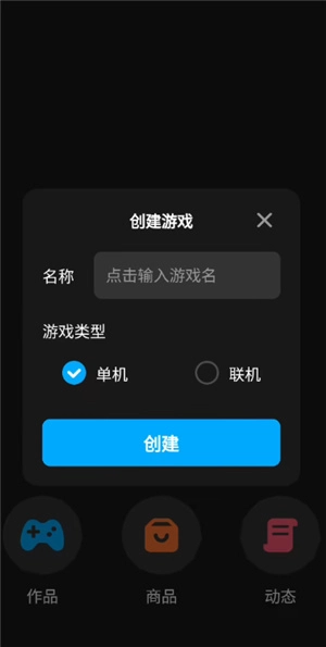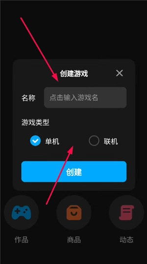 在着手创建游戏之前,需要先输入游戏名称,并选择游戏类型,例如单机、联机等类别。