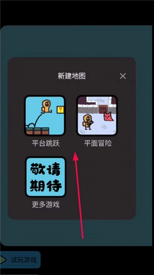 进入后,选择新建地图,比如平台跳跃、平面冒险等。