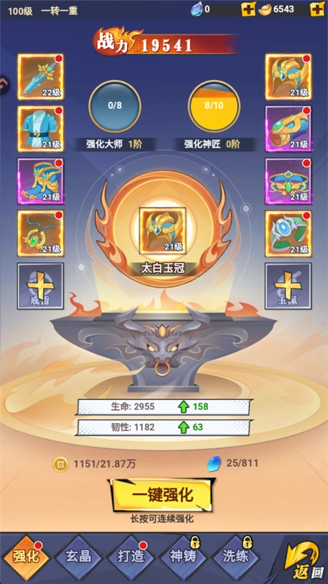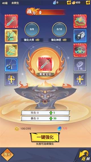 通过宝石与金币来强化武器,能够提升攻击、暴击等属性,进而增强战力。