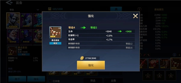 装备系统新增了词条机制,当强化等级达到特定阶段时,会解锁一个随机的额外词条,属性涵盖速度、暴击、攻击等。