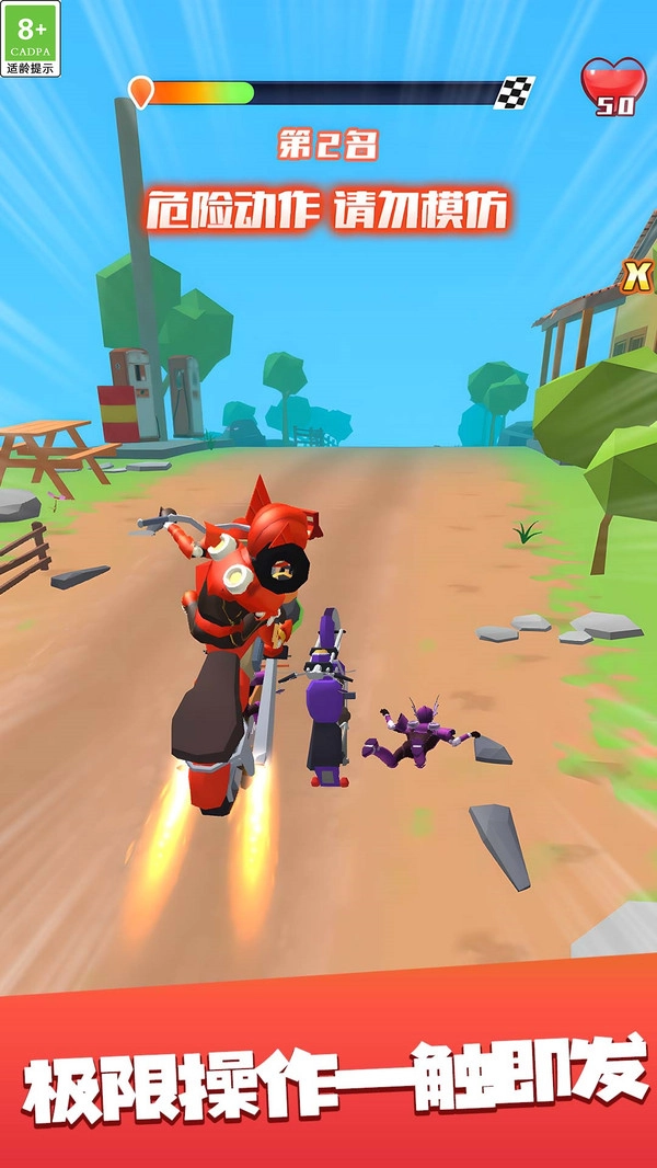 你可以自由选择多种模式,化身为出色的摩托驾驶员快速完成各项挑战,还能体验精彩刺激的竞速,这一点不容小觑。