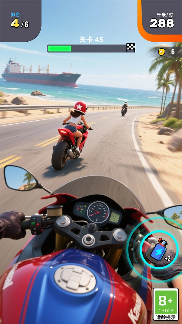 《指尖摩托》是一款打破传统的摩托竞速游戏。它创新地融合了“重力感应+触控”的双操作模式,使玩家能够在精心打造的3D立体赛道上,尽情感受肾上腺素急剧飙升的刺激体验。游戏中独特的氮气连击系统颇具亮点,玩家漂移过弯时也能积累能量,当释放终极加速时,还会触发绚丽夺目的粒子特效。此外,游戏支持实时多人对战功能,玩家可以与来自全球的对手同台竞技,角逐赛道之王的荣誉称号。