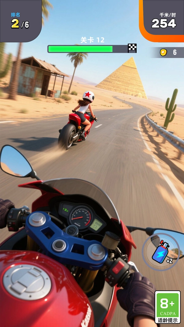 游戏画面制作精良,场景设计丰富多元,涵盖城市街道、山地、沙漠等各类地形。玩家需依据不同赛道与障碍,灵活把控摩托车的方向和速度,避开障碍物,精准把握时机,连贯流畅地完成一系列高难度动作。