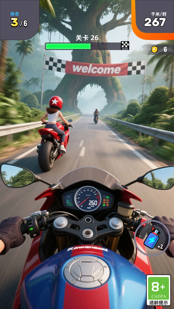 游戏里设计了丰富多样的关卡,玩家能够逐步解锁并体验。进入关卡后,玩家将驾驶自己的摩托车与其他对手展开对决,开启一段极速又刺激的追逐旅程。在这里,还能解锁更多有趣的闯关挑战,可玩性相当高。