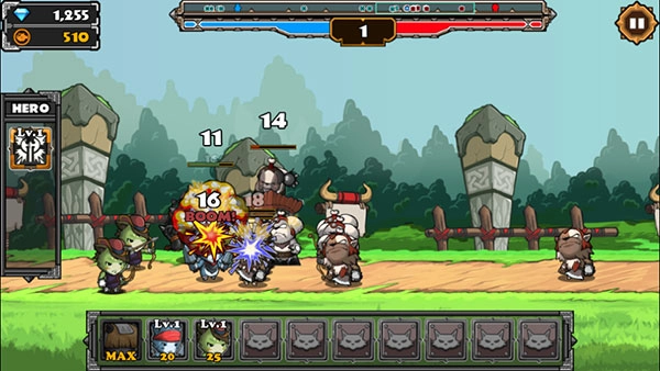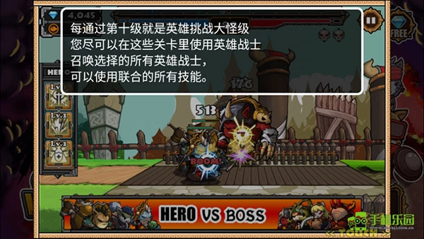 每通过第十级便会开启英雄挑战大怪关卡,玩家需要合理召唤英雄战士来击败大怪。