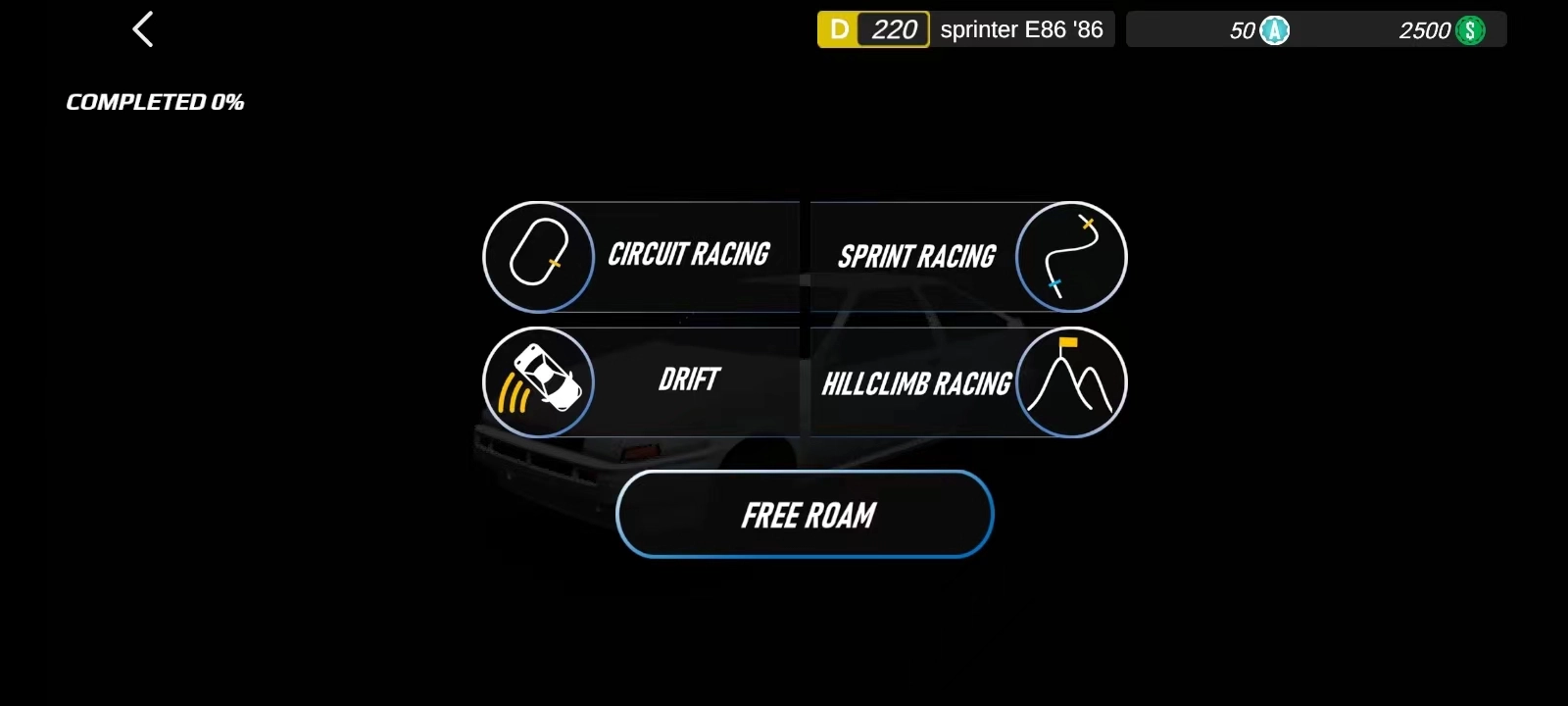 登录成功后,能看到赛车、短跑、漂移、爬坡比赛等多种游戏模式,玩家可以根据自己的喜好选择体验,接下来就以赛车模式为例进行说明。