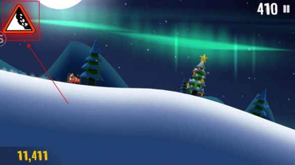 屏幕左上角配备了雪崩警示装置,一旦雪堆即将靠近,该装置便会持续闪烁以传递警报。即便玩家已亲眼目睹身后汹涌袭来的大雪,只要快速起身并继续滑行,依旧有机会摆脱这近在眼前的雪堆。