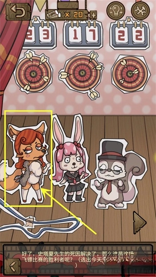 侦探剧场是一款画风可爱的休闲推理游戏,巧妙融合了剧本杀玩法与动物童话元素。玩家将化身为动物侦探,着手调查狐狸先生奖杯失窃、水獭家神秘凶案等一系列离奇案件,每个关卡都充满了意想不到的转折。游戏以拟人化的动物作为主角,案件看似荒诞不经,实则逻辑严谨。玩家需要通过观察场景细节、收集关键线索、盘问相关嫌疑人,最终揭开案件的真相。这些案件大多围绕小动物展开,比如谁偷走了松鼠的过冬松果、刺猬先生的菜园为何遭到破坏等,在荒诞的表象下暗藏着严谨的逻辑。游戏采用柔和的蜡笔色调,搭配Q版动物立绘,即使是凶案现场也充满了童趣。此外,游戏无需联网,也没有体力限制,玩家可以随时随地开启一场10分钟的头脑风暴。