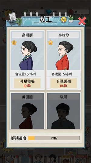 有不少员工可供你招募,每位员工都具备独特的特性,等待你去发掘和运用。