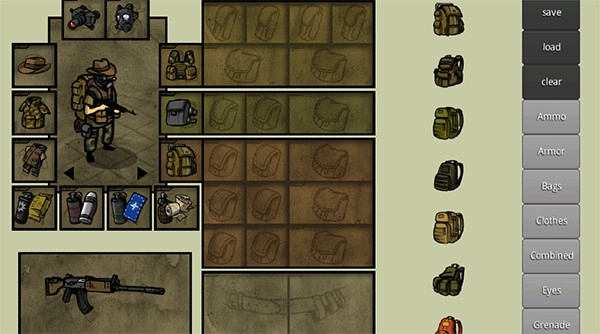 这里面包含突击步枪、轻机枪、近战武器、杂类武器、半自动或非自动步枪、榴弹及火箭发射器、霰弹枪、冲锋枪,还有弹药、防弹衣、背包、各类衣服、眼镜、帽子、面具、医疗用品、杂项物品、标志、挎包、无线电设备、战术背心、食物以及炸弹。