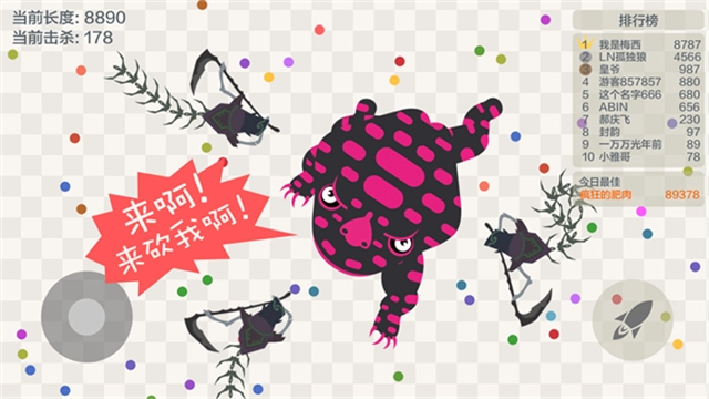 《五毒大作战》是一款休闲竞技类游戏,玩法和经典的贪吃蛇颇为相似。在游戏里,玩家除了能操控传统的蛇形角色外,还可以选择蜘蛛、蝎子、蜈蚣、蟾蜍和壁虎这五种毒物作为自己的操控对象。每一种生物都有着独特的攻击性和危险性。玩家需要操控这些生物去吞噬比自己弱小的敌人,同时还要躲避更强大的对手。整个游戏过程充满了挑战与策略性,竞争氛围十分浓厚,这大大增强了游戏的可玩性。