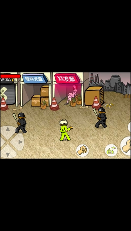 在格斗状态下,按下攻击键,主角就会持续挥拳,要是击倒敌人,便会自动触发连击!若想拾取地面上的物品,需操控主角站到物品所在位置,按住攻击键不松开,就能完成拾取操作!
