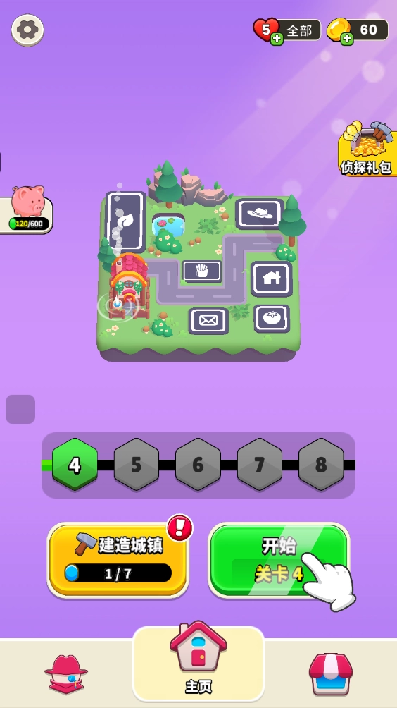 通过闯关我们能够收集到金币,用来建设自己的小镇。