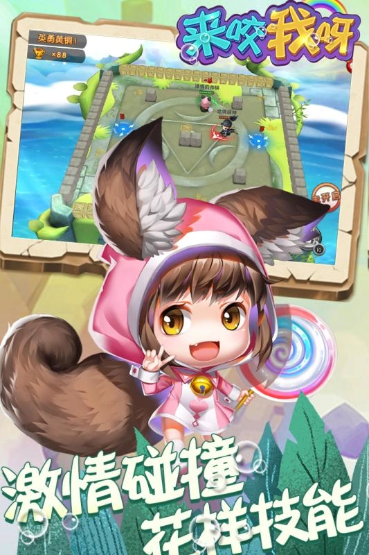 《来咬我呀》是一款画风Q萌的休闲竞技游戏。游戏构建了清新的休闲竞技世界,这里有丰富的Q版英雄供你挑选,多样的装备道具等待解锁,还有丰富的关卡设置,你可以凭借聪明才智闯关。你既可以和小伙伴组队战斗,制霸竞技场;也可以独自挑战各类关卡。在游戏里,所有敌人都能用一场碰碰战斗解决,如果不行,那就撞翻它两次!快来试试吧!