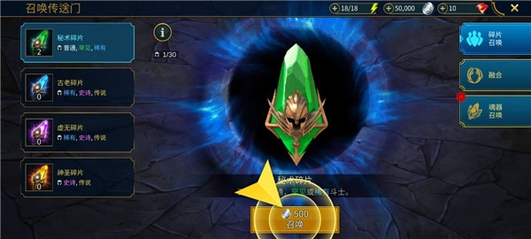 点击召唤,花费500银币