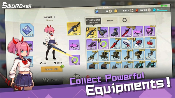 剑术冲刺是一款超有趣的动作冒险闯关游戏,英文名也叫swordash。在游戏里,你将化身一位身着JK服饰的美少女,开启关卡挑战之旅,与形形色色的怪物交锋。关卡中会涌现出千奇百怪的敌人向你袭来,你需要挥动手中的武器,不断击败它们。击败怪物后,还能获得它们掉落的装备,集齐有羁绊效果的装备组合,就能让自己变得更强大哦。感兴趣的小伙伴,快来玩剑术冲刺吧!