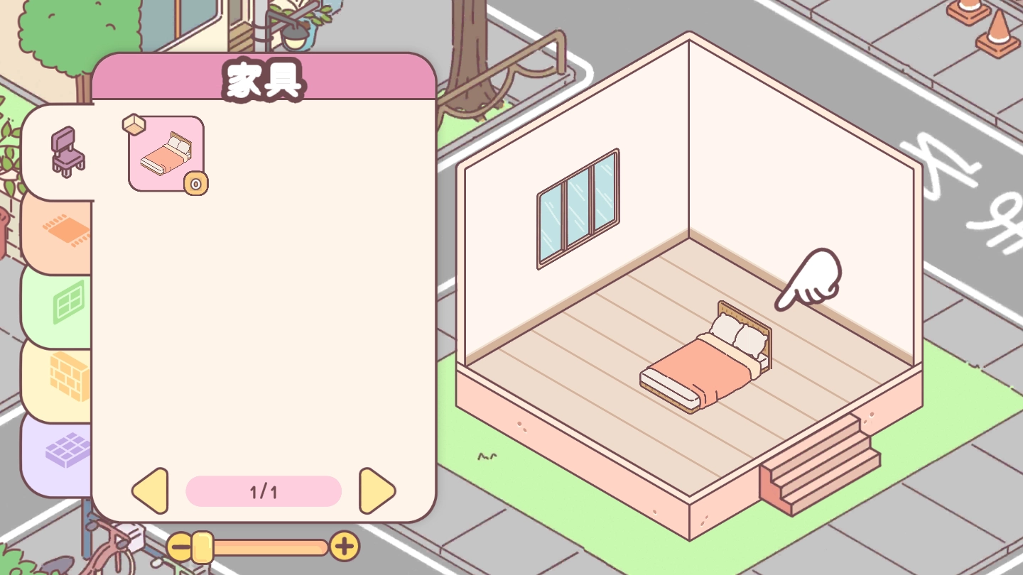 如图所示,一张硕大的床被送来了,玩家能够自由调整它的摆放位置。