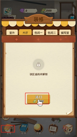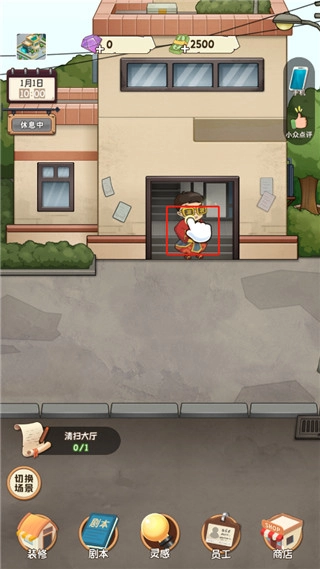 我们能看到店面已经打扫干净了,接下来可以向合伙人租借剧本,每个剧本都有相应的租借费用,玩家得用心经营才行。