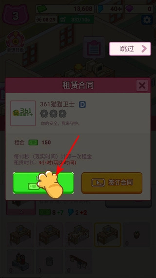 在游戏里点击绿色按钮完成租金支付后,就能签订租赁合同开启合作,这是拓展业务进程中的关键操作步骤,支付环节要注意把控租金金额与合作收益之间的平衡关系。