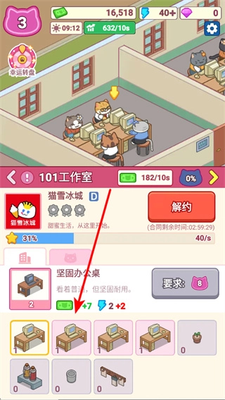 不同层级的猫咪都有专属造型与动作,从普通员工到董事长各有特色,结合Q版卡通风格,使经营过程充满萌趣,带来舒适的视觉感受。