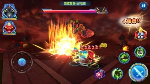 巨神战击队3是一款采用3D画面的动作冒险类手机游戏。游戏拥有Q版可爱的画面风格与角色造型,玩家可操控红宵卫、黄擎卫等四位主角并肩作战,携手对抗鼠王爷及其他四大妖君。游戏内设有丰富精美的场景,搭配炫酷华丽的技能特效,为玩家带来刺激爽快的打怪体验,玩家还能通过合体召唤巨型机器人参与战斗。
