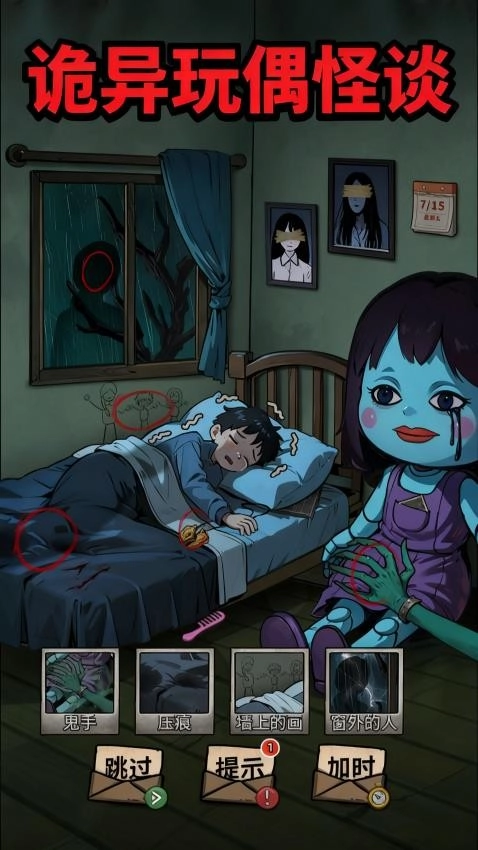 你得在昏暗的灯光下仔细检查每一个细节:玩偶肢体关节不自然的扭转、窗外黑影的凝视角度、地板上莫名出现的水渍、图画里多出的诡异线条……