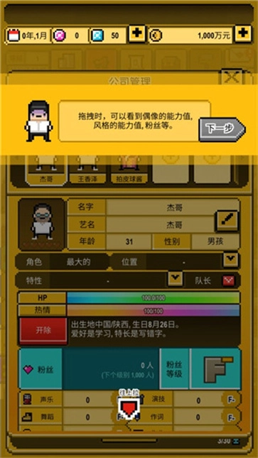 游戏玩家还可以成为明星经纪公司,发掘各类才华出众的人,让他们加入你的团队。