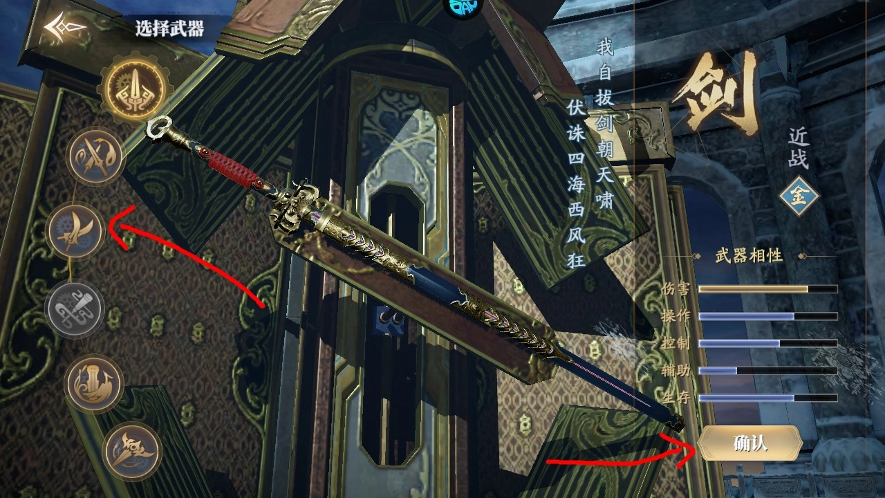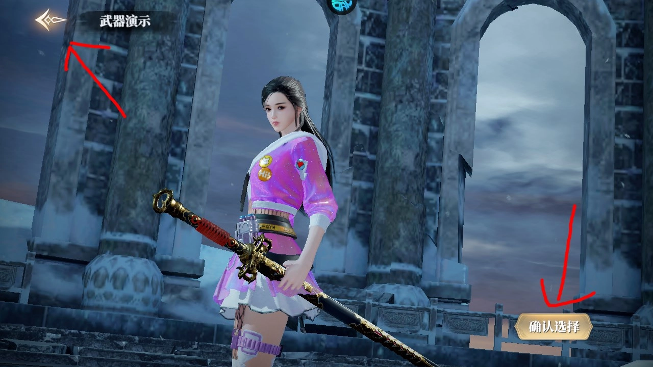 选好武器后会有一段演示,要是觉得满意就点确认选择进入游戏,点左上角的箭头就能重新选武器。