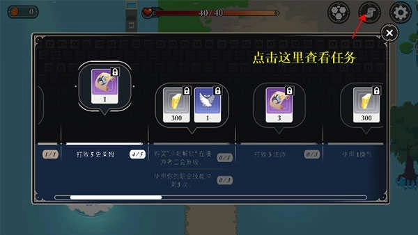 5、点击下图位置可以显示任务,你可以按照任务提示来开始你的冒险之旅。