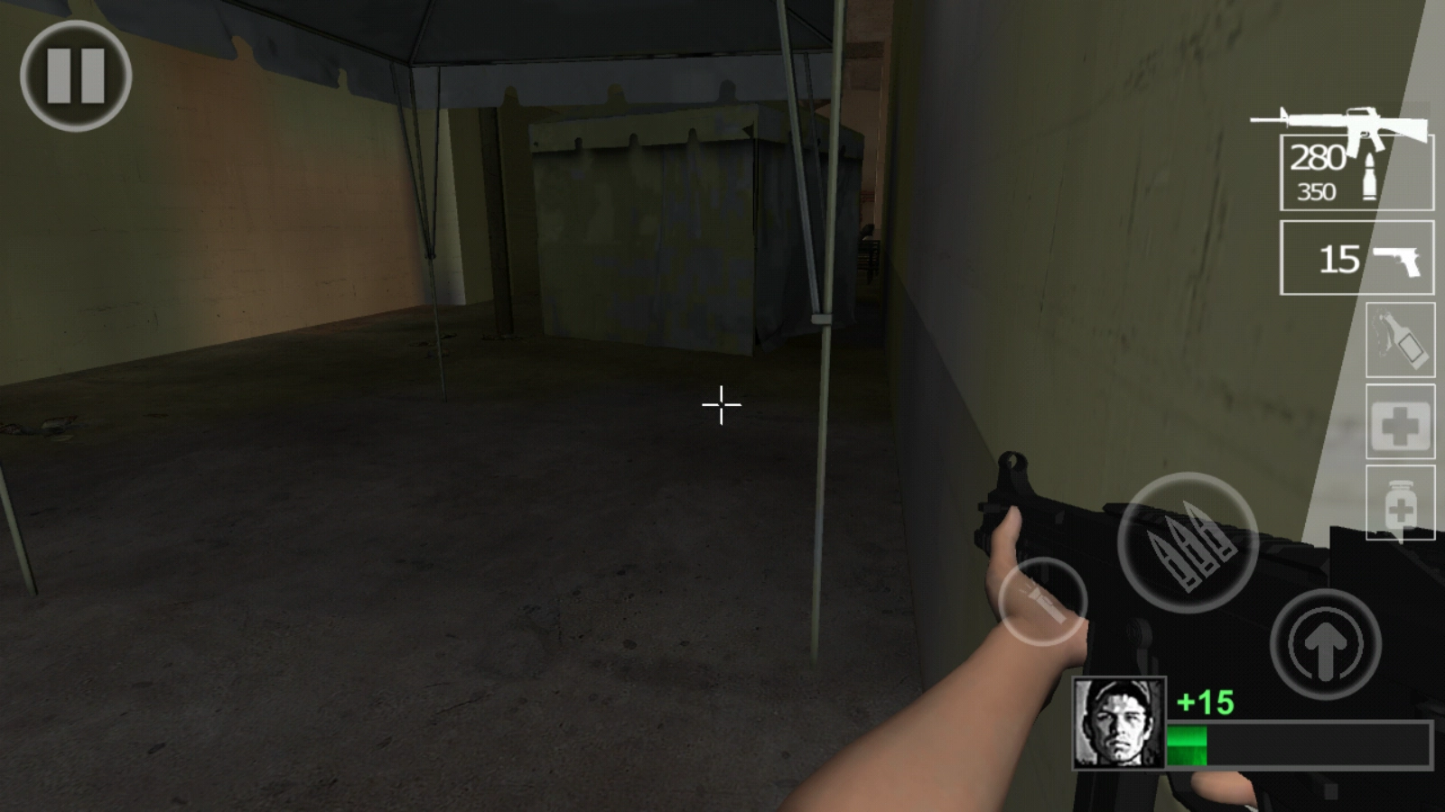 各种类型的武器都有,包括手榴弹、烟雾弹,同时还能使用药品回血,效果极好的。