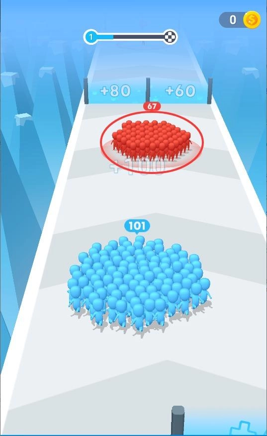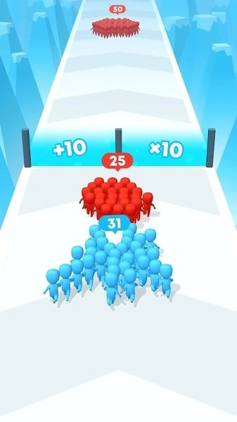 游戏的核心玩法围绕跑酷展开,玩家需要操控人群一路突破各种障碍。在行进过程中,选择正确的路径能够让队伍规模不断扩大,而一旦选错则会导致人员减少。只有确保队伍人数充足,才能顺利应对最后的Boss挑战。