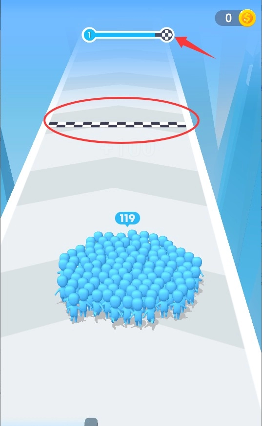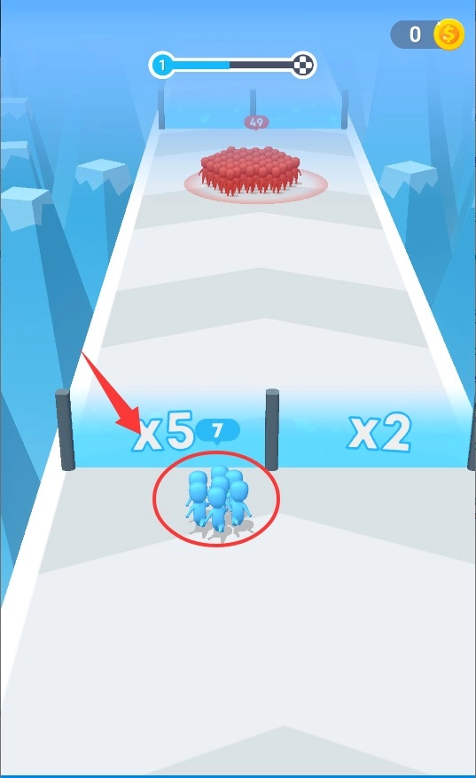 游戏开始后,用手指滑动屏幕就能指挥角色移动,引导队伍穿过带有标记的入口,这样就能增加成员数量,让己方势力变得更强大。