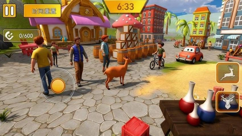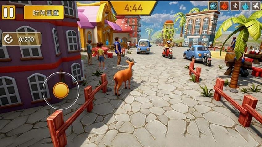这是一款主打解压的动物模拟休闲游戏,玩家在游戏里的核心任务是操控外形类似山羊的“鹿哥”,在开放式的城市场景中,借助冲撞、踢踹等动作随意破坏车辆、路灯、自动贩卖机等各类城市设施,以此来积累游戏积分。