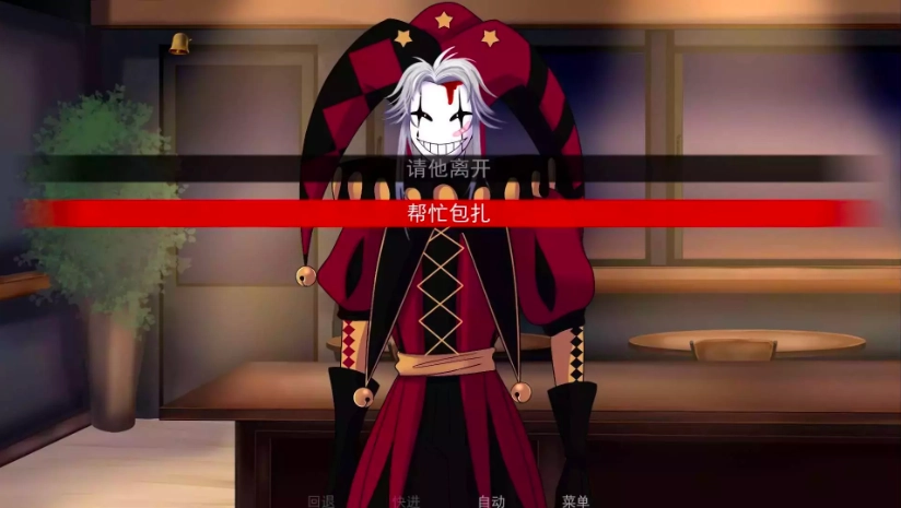 在接下来的选项里,选择“帮忙包扎”会解锁pierrot超可爱的小表情,而选择“请他离开”对应的则是伤心表情。