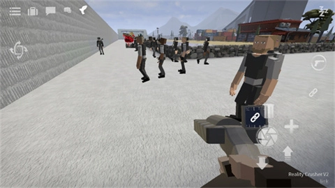 点击右侧的“手枪”按钮即可获取枪支,使角色切换至持枪状态;点击中心区域可进行开枪操作,而“+”号按钮则能添加新的靶子角色。