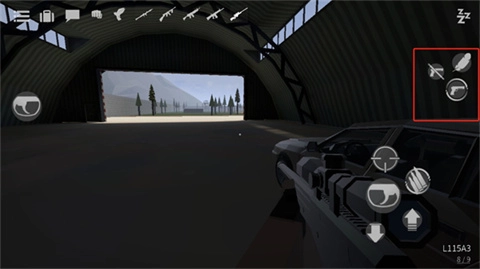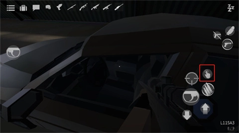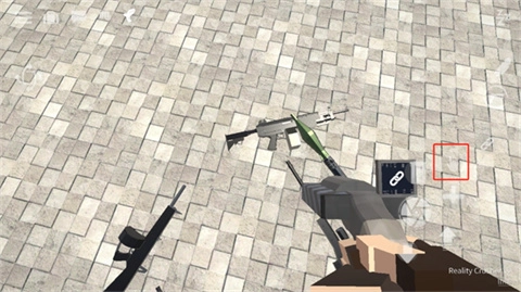 要拾取枪支,首先得找到一把枪,然后把准心对准这把枪,此时屏幕左侧会弹出一个手指形状的按钮,按住该按钮就能完成拾取操作。