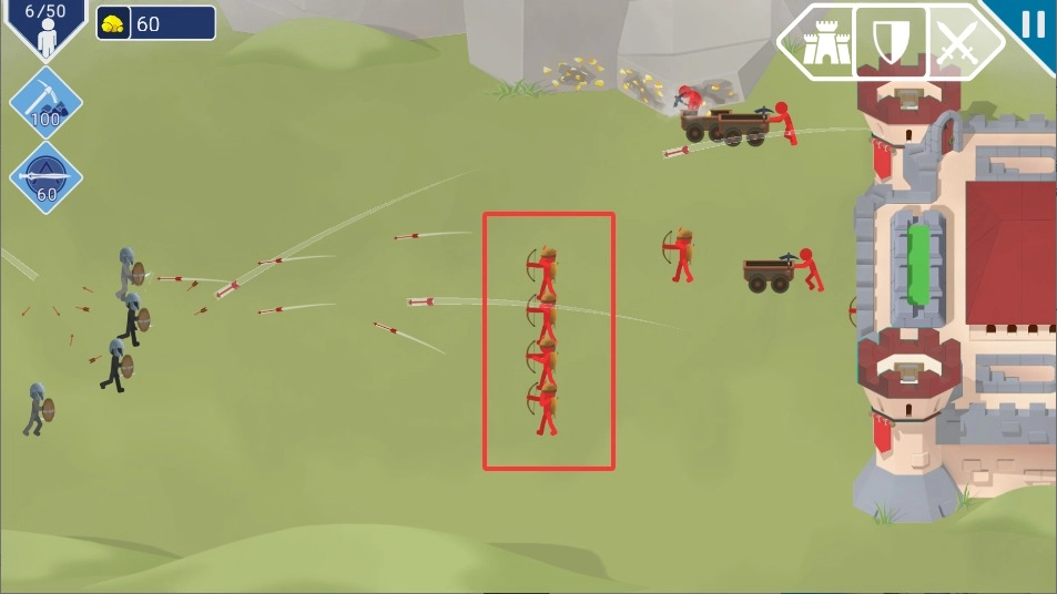 踏入战场后,轻触屏幕即可部署你的火柴人军团,巧妙规划各类兵种的站位,打造无懈可击的阵容来抵御敌方的猛烈进攻。