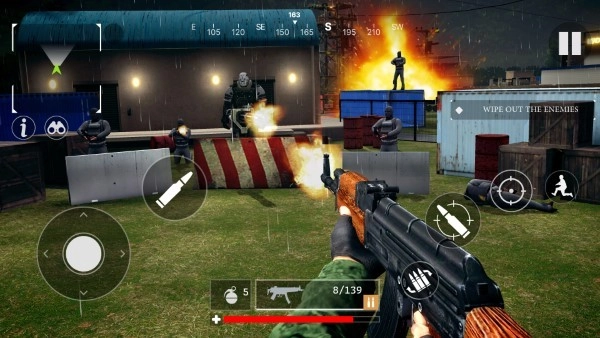 动态战场机制:12类拟真环境系统会对战斗产生实时影响——沙尘暴来袭时能见度将骤降至20米,雨中作战时枪械卡壳的概率会提升30%,一旦夜视仪电量耗尽,玩家便会陷入伸手不见五指的黑暗之中。