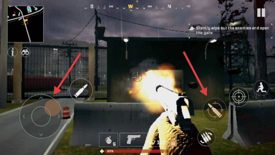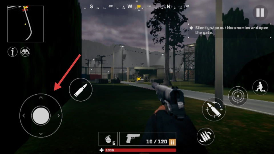 左手摇杆负责操控移动,右手通过滑动来调整视角,双击蹲伏按键即可触发战术翻滚动作。