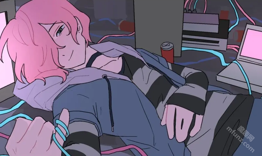 复古科幻美学:以蓝粉色调为基础,结合电路板样式的界面设计,还原老式显示屏特有的复古波纹质感