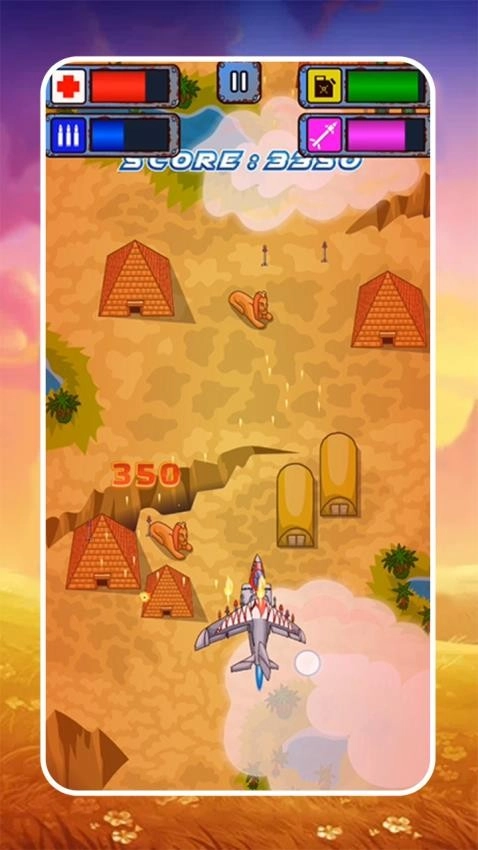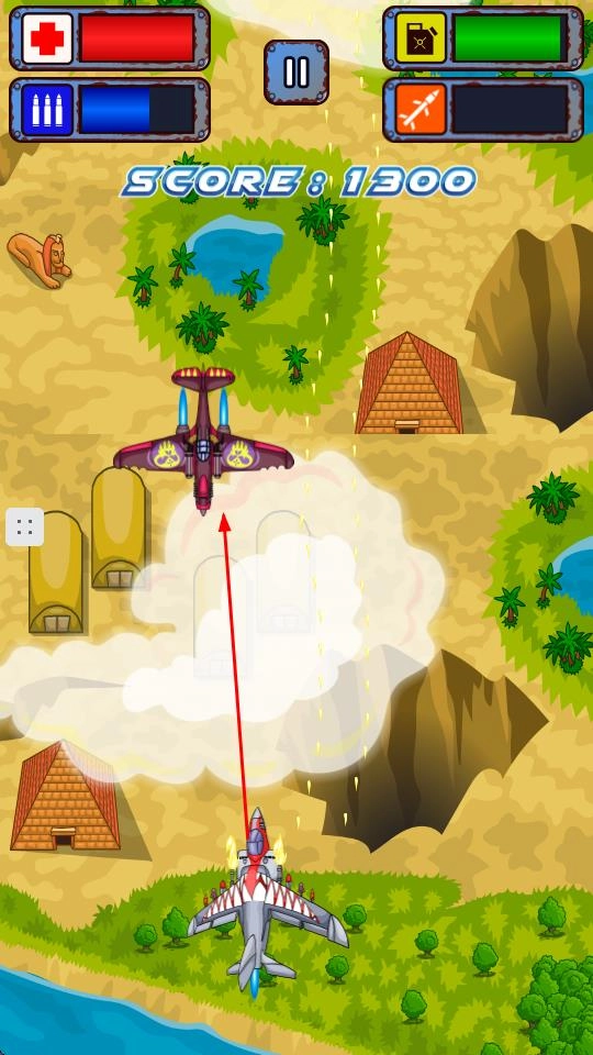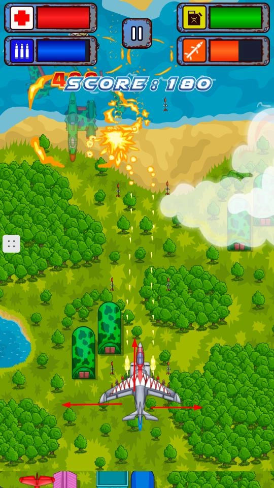 驾驶飞机穿梭于森林、沙漠、海洋等多样场景,通过左右移动规避敌人的子弹与攻击,与此同时发射子弹对敌方飞机展开反击。