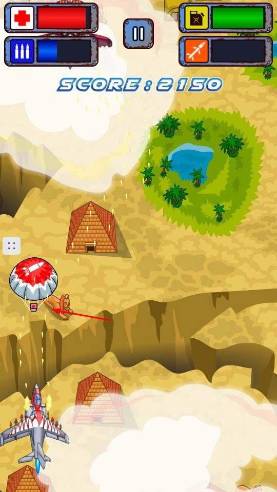 操控战机执行打击任务:借助灵活的操作来控制战机的移动轨迹,精准锁定空中的敌方战机以及地面上的各类目标,随后发射炮弹实施精准打击。在此过程中,需重点摧毁敌方基地等核心设施,当满足关卡设定的要求后,即可领取对应的奖励。