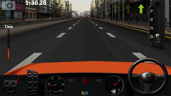 左下角的第一个踏板是【刹车】,当我们持续踩住这个踏板时,就能降低车辆行驶速度,从而与前方车辆保持安全的距离。