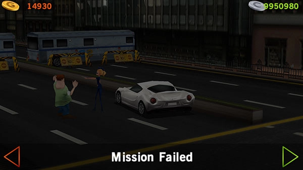 要是没能及时把方向盘回正,就很容易引发【交通事故】,游戏到这时候也就结束了,点左边的箭头可以返回,右边的箭头则是继续。