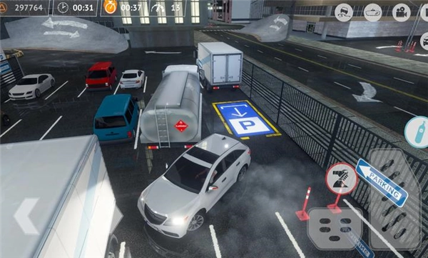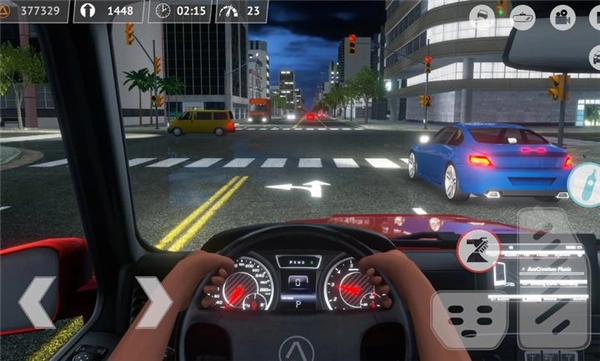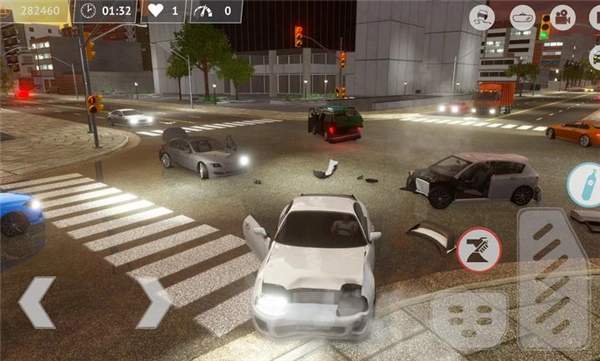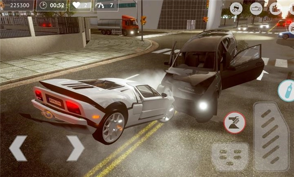 通过左侧按键操控车辆方向,右侧按键负责车子的加速与刹车,点击右上角的摄像机按钮能够调整游戏视角,点击汽车图标则会出现多种驾驶功能键供你使用。