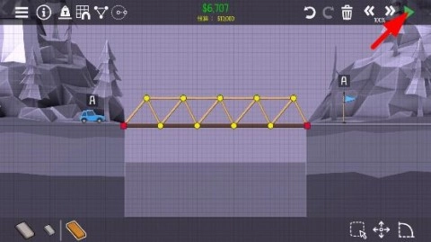 弄好之后点击左下角的测试按钮,测试这座桥的安全性与稳定性,确认它可以通行。